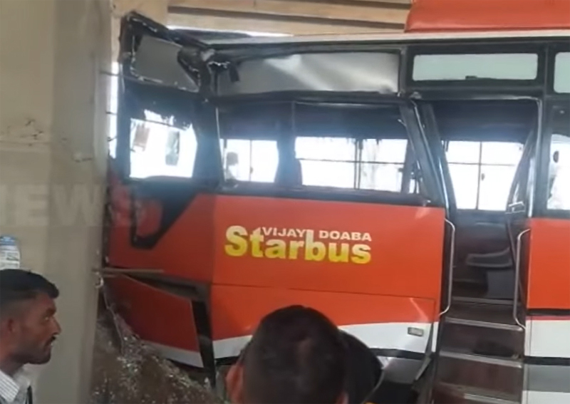Police said, the incident occurred near the Bari Brahmana area when the bus, en route to Kathua from Jammu, slammed into the pillar before hitting a motorcycle after the driver lost control due to over speeding.