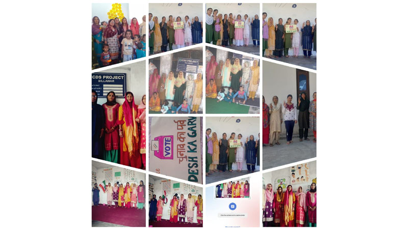 Kathua, Apr 08: In an effort to promote active participation in the democratic process, a Systematic Voter’s Education and Electoral Participation (SVEEP) event was organized in Billawar today. The event witnessed the collective efforts of the POSHAN Projects, which spearheaded various awareness campaigns at the grassroots level.