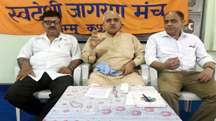 Swadeshi Jagran Manch, National President Satish Kumar addressing a press conference at Veer Bhavan Jammu on Tuesday. By Daily Excelsior - July 18, 2017 Share FacebookTwitterWhatsAppPinterestLinkedinCopy URLTelegramEmailTumblrReddItPrintKoo Swadeshi Jagran Manch, National President Satish Kumar addressing a press conference at Veer Bhavan Jammu on Tuesday. Swadeshi Jagran Manch, National President Satish Kumar addressing a press conference at Veer Bhavan Jammu on Tuesday. Follow our WhatsApp channel