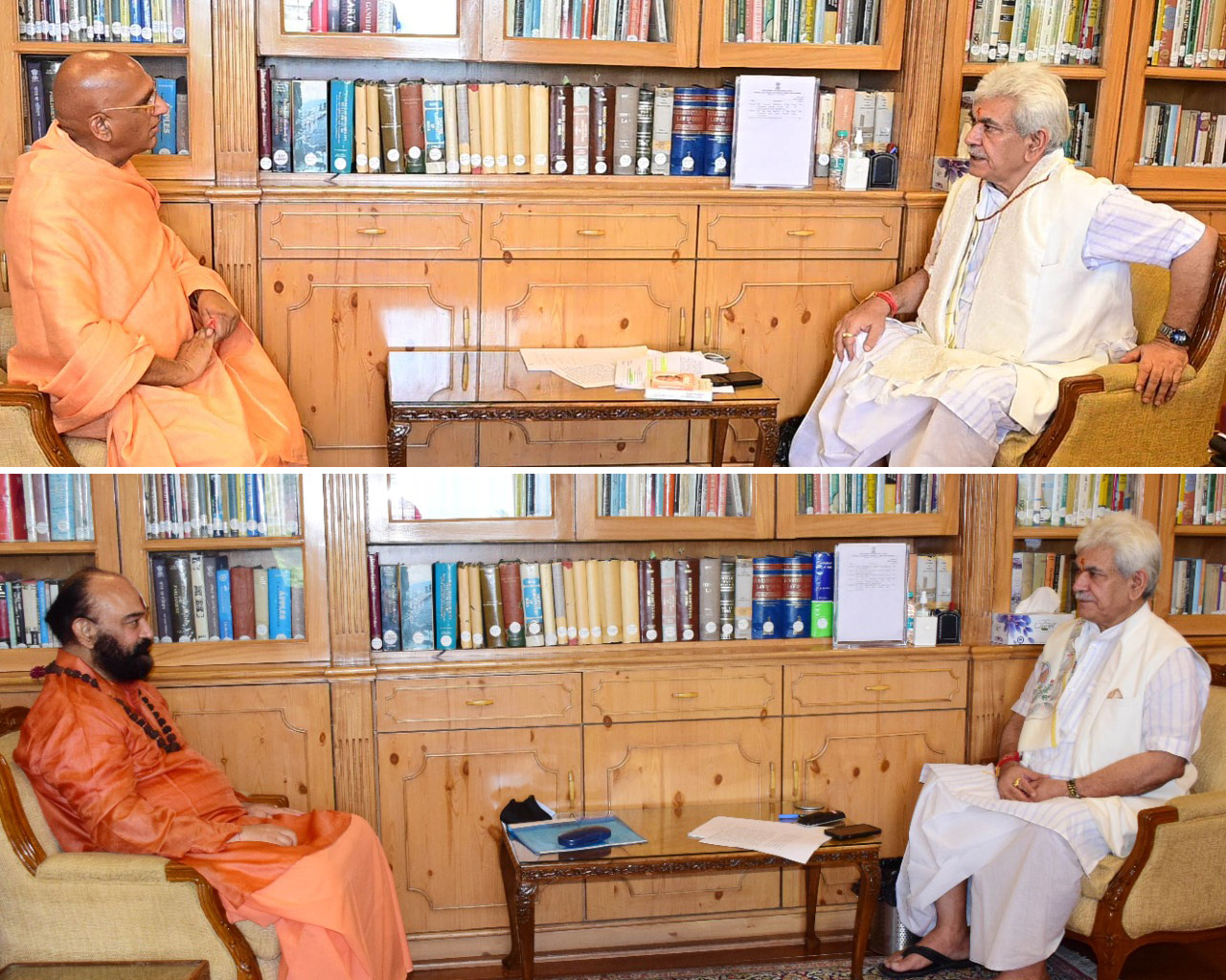 Swami Avdheshanand Giri Ji Maharaj and Mahant Deependra Giri who met the Lt Governor, separately, discussed the arrangements put in place and other matters pertaining to Shri Amarnathji Yatra that commenced on 30th June.