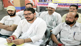 Swami Gangadhar Ji Maharaj informing about programme schedule of Paryavaran Sammelan on Monday. -Excelsior/ Rakesh
