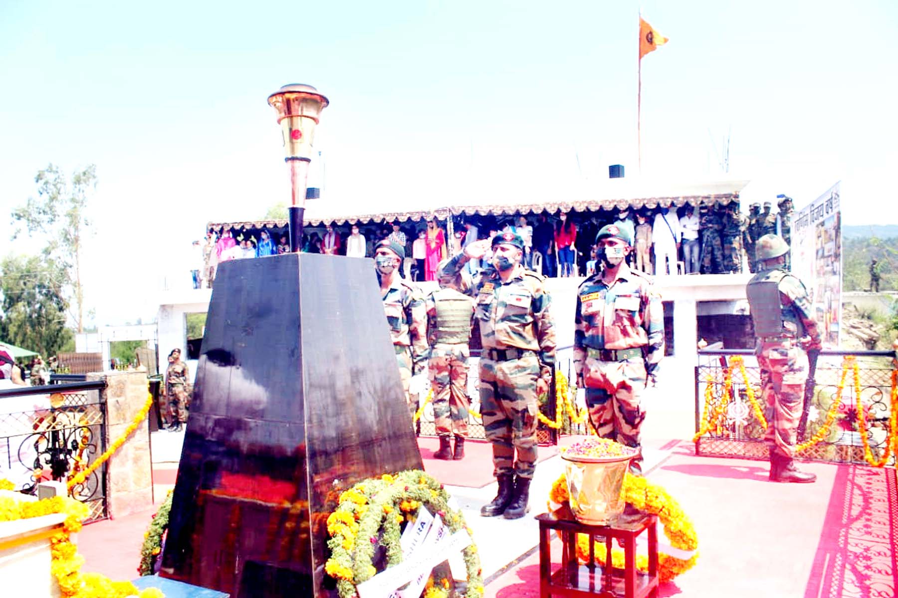 On Jun 2, 2021 the victory flame arrived at Lam Rashtriya Rifles unit. For the indomitable spirit displayed by the residents of Shaheedgarh, Lam, Rashtriya Rifles had rightfully brought down this victory flame over the holy ground of `Shaheedgarh War Memorial’ amongst the people residing in border areas of Lam and Qila Darhal.