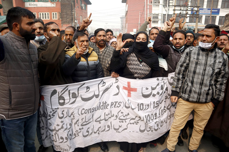 The protestors said that the Director of Health Services Kashmir had earlier presented a proposal to the government for the implementation of a minimum wage act for part-time sweepers, but that the proposal had been ignored by higher authorities. “We want the government to consider the proposal as we are struggling to run our homes on meager salaries,” a protestor said.