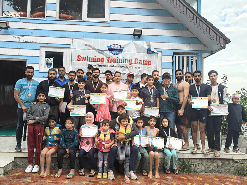 SRINAGAR, Sept 20: Shakeel Ahmed, president of the Swim N Survival Society-Kashmir (SNSS-K), awarded certificates and mementoes to over 40 participants at the Water Sports Centre, Nigeen, celebrating the successful completion of a 100-day swimming course. The initiative, organized in collaboration with the Department of Tourism Kashmir, aimed to teach swimming to non-swimmers, garnering enthusiastic participation from the local community, particularly children.