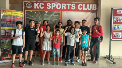 Winners of Swimming Competition posing for a group photograph at KC Sports Club in Jammu.