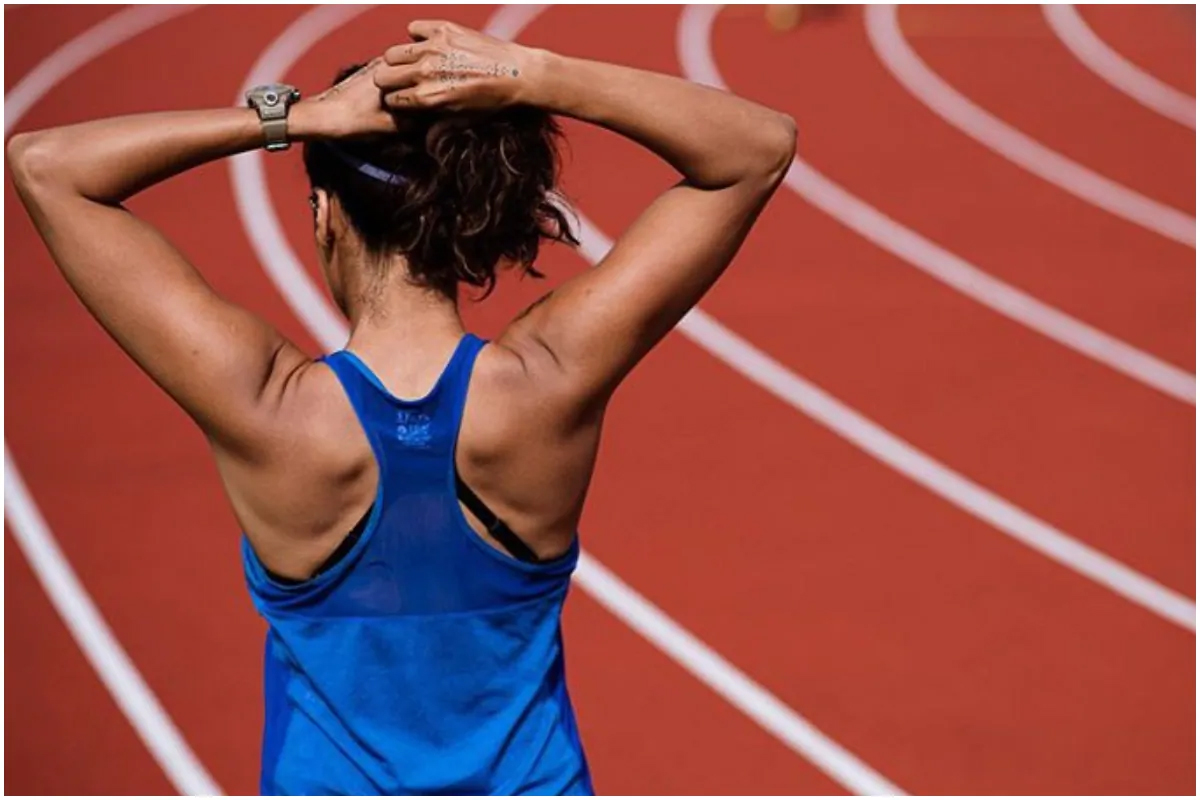 Later, she appeared in the get up of an athlete and gave different shots.