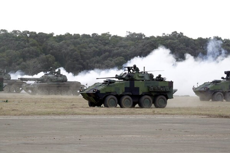 The drills began in the north with tank maneuvering at a base in Hsinchu featuring outmoded CM-11 tanks, which are gradually being replaced by newly purchased Abrams M1A2T from the US.
