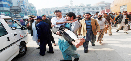 PESHAWAR, Dec 16: As many as 141 people, nearly all of them school children, were massacred today when heavily armed Taliban suicide bombers stormed a Pakistan army-run school here, firing indiscriminately, leaving another 130 injured.
