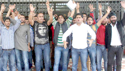 The students, who were denied admission in various PhD courses, were SSJAC Chairman Varinder Singh, Pradhuman Singh, Shiv Kumar Khajuria, Ritu Raj Sharma, Sikandya Devi, Nishant Verma, Mousin Raina, Ajay Prasar, Varinder Kour and many others.