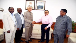 NEW DELHI, Apr 24: A delegation from Zanzibar-Republic of Tanzania led by its Minister for Labour and Public Services/Personnel & Training, Haroun Ali Suleiman today called on Union Minister of State (Independent Charge) for Development of North Eastern Region (DoNER), MoS PMO, Personnel, Public Grievances,Pensions, Atomic Energy and Space, Dr Jitendra Singh at his office and discussed issues related to governance and personnel management on which the two countries could exchange inputs.
