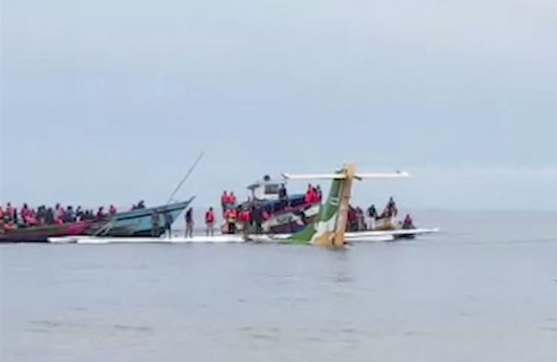 Photos showed the plane, which was headed to Bukoba Airport, mostly submerged in the lake. Precision Air is a Tanzanian airline company.