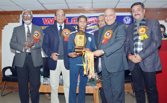 Sixteen years old Shivani, a student of Govt. Hr. Sec. School, Domana, Jammu who also represented the country in the World Cup Sport Climbing Competition in June 2017, was honoured with medals, a memento and cash prize of Rs 10000 sponsored by Sprawling Buds School and Indian Mountaineering Foun-dation, North Zone Committee, New Delhi.