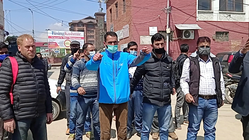 Srinagar, Mar 31: The teachers of the School Education Department today staged a protest here demanding that their pending salaries must be released while their regularization orders must also be released without any delay.