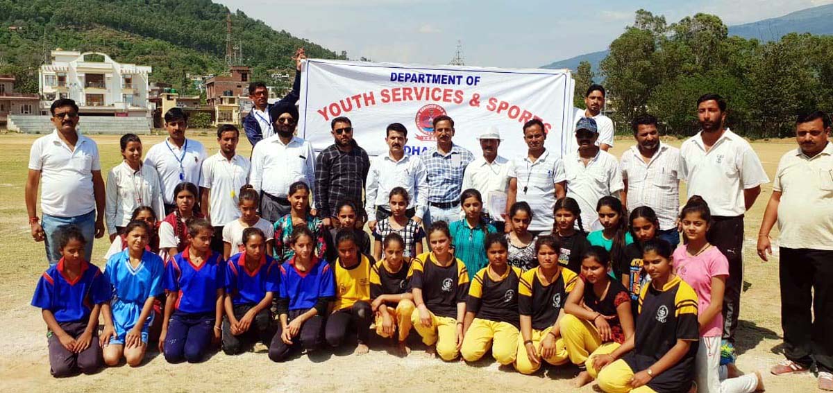 Teams posing along with DYSSO Udhampur at Sports Stadium, Udhampur on Wednesday.