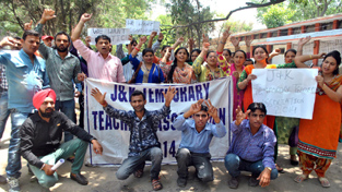 The protest was organized under the banner of J&K Temporary Teachers Association-2014, led by it its president Balwinder Singh Pawar.