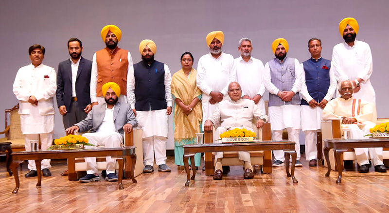 Haryana Governor Bandaru Dattatreya, Punjab Chief Minister Bhagwant Mann, Protem Speaker Dr Inderbir Singh Nijjar, AAP MLAs and family members of those who were inducted as ministers were among those present at the event.