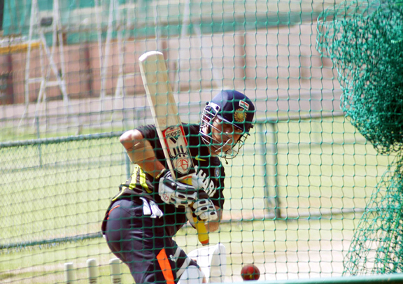 He first asked India pace spearhead Zaheer Khan, who has been training here for the last few days, to bowl at him, which he and other young fast bowlers did. He took a 10 minute break after 45 minute practice and then went back to the nets.