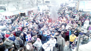 MENDHAR, Jan 25: Tension gripped the entire Mendhar town this afternoon as hundreds of workers of PDP came out on the road and started massive protest demonstration against the NC-led State Government for allegedly keeping local MLA, Sardar Rafiq Hussain Khan from PDP, away from the official Republic Day function.