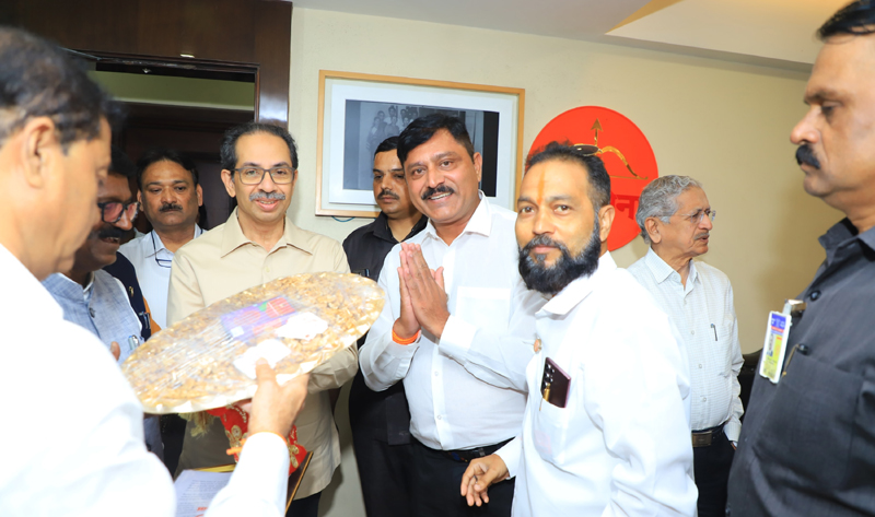 J&K Shiv Sena president, Manish Sahni greets Uddhav Thackeray in Mumbai.