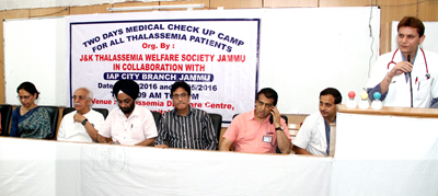 Dr Sanjeev Digra Associate Professor, Pediatrics & Consultant in-charge Thalessemia Day Care Centre SMGS Hospital, conducted, the proceedings during the entire two day camp. Er Sudhir Sethi, president, J&K Thalassemia Welfare Society Jammu, highlighted the achievements of the society .