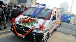 The ambulance which was donated by J&K Bank to Dargah Hazratbal on Thursday.