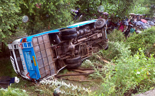 The ill-fated bus in gorge at Surankot in Poonch district on Saturday.     -Excelsior/Harbhajan