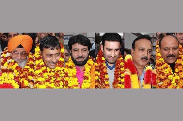 The winners: Charanjit Singh Khalsa,Vibodh Gupta, Javed Mirchal, Qaiser Jamsheed Lone, Sajjad Kitchloo and Surinder Choudhary. — Excelsior/Rakesh