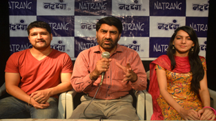 Director Natrang Padamshree, Balwant Thakur addressing the media at Natrang Studio Theatre in Jammu.