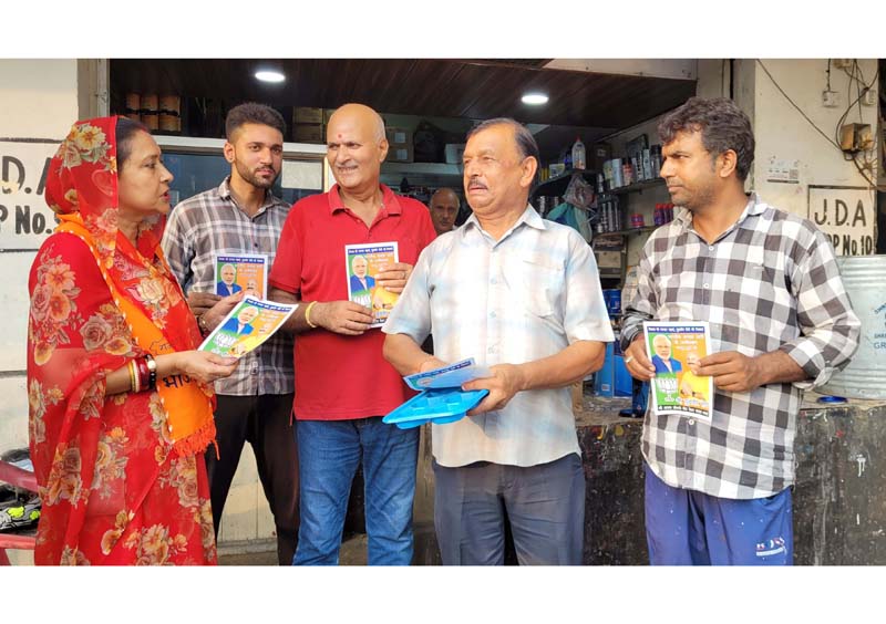 JAMMU, Sept 13: Senior BJP leader Ratna Kumari Shahpuri from Jaipur Rajasthan who is campaigning in Jammu for last over 10 days while addressing an election meeting in New Plots in Jammu East Assembly constituency appealed people to vote for BJP candidate, Yudhvir Sethi in the ensuing Assembly elections and make him victorious with a huge margin.