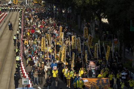 HONG KONG, Jan 1: Thousands protested in Hong Kong today pressing China to allow full democracy in the city as a battle intensifies over Beijing’s attempts to control the outcome of a planned direct election for the city’s leader in 2017.