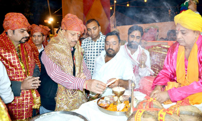 MLA, Reasi Baldev Raj Sharma liting sacred Jyoti at Katra on Monday.