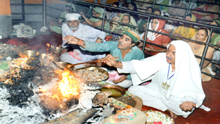 JAMMU, May 30: Braving the sweltering heat thousands of devotees drawn from different parts of Jammu thronged the Bhagawaan Gopinath Ashram at Udaiwala Bohri near here today to pay obeisance to Bhagawaan Ji where an annual Mahayagya was performed.