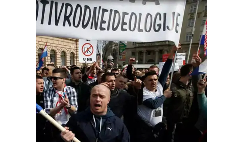 Protesters demanded also that the authorities curb hard right groups and their frequent use of pro-fascist symbols relating to Croatia’s World War II pro-Nazi puppet state, which ran concentration camps where tens of thousands of ethnic Serbs, Jews, Roma and antifascist Croats were executed.