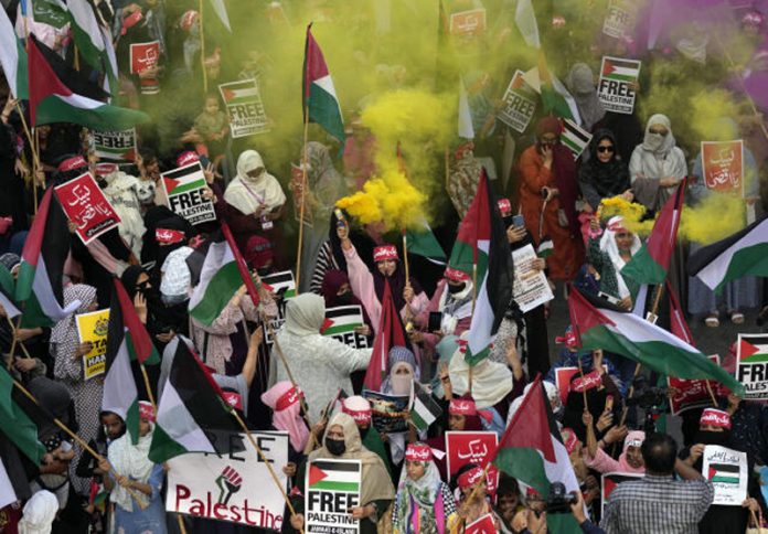 ISLAMABAD, Oct 29: Thousands of supporters of Pakistan’s main politico-religious party rallied in the capital, Islamabad, Sunday against Israel’s bombing of Palestinians in Gaza, chanting anti-American slogans and accusing the US of “backing the aggressor.”