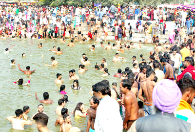 Taking the bath in the pond at the shrine is considered auspicious by the devotees.