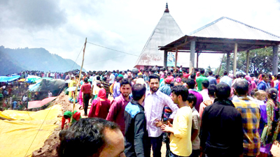 UDHAMPUR, June 28: Thousands of people from Udhampur, Ramnagar, Chenani, Bhaderwah and Dudu-Basantgarh area thronged Top Shivgali temple of Mata Chandi where annual Mela was organised today.