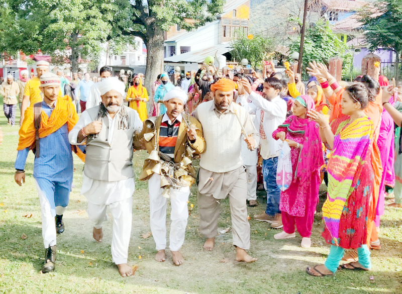 The holly Mace (Charri Mubarak) was taken out from 2100 years old Vasuki Nag Temple Gatha at 8:30 AM, which was joined by another Mace from Vasuki Nag Temple Vasik Dhera, Bhadarwah. Ex MLC and Wazir Vasuki Nag Temple Vasik Dhera Naresh Kumar Gupta and senior leader Mast Nath Yogi also participated in the rituals of ancient Yatra at Vasik Dhera. A large number of Nag devotees see off the Mace of Ancient Kailash Yatra, while maintaining social distancing and wearing masks.