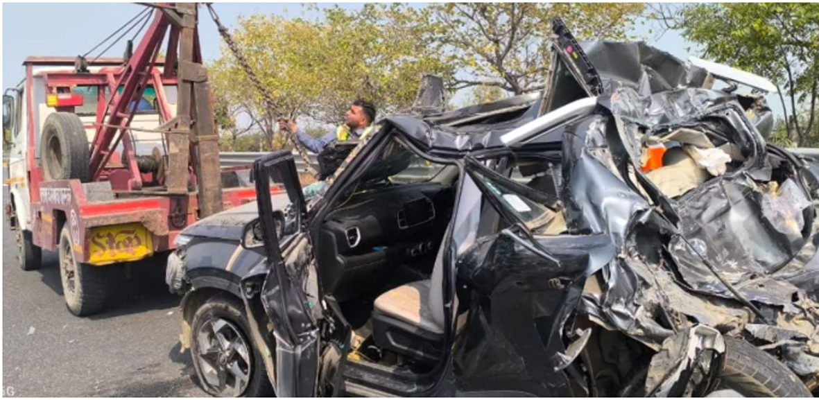 As per reports, the incident occurred around 1:30 PM yesterday when a speeding bus collided with a car traveling towards Noida, causing it to overturn.