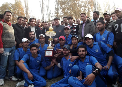 Dr Mustafa Kamal, senior leader National Conference along with winners of T20 Cricket tourney on Wednesday.