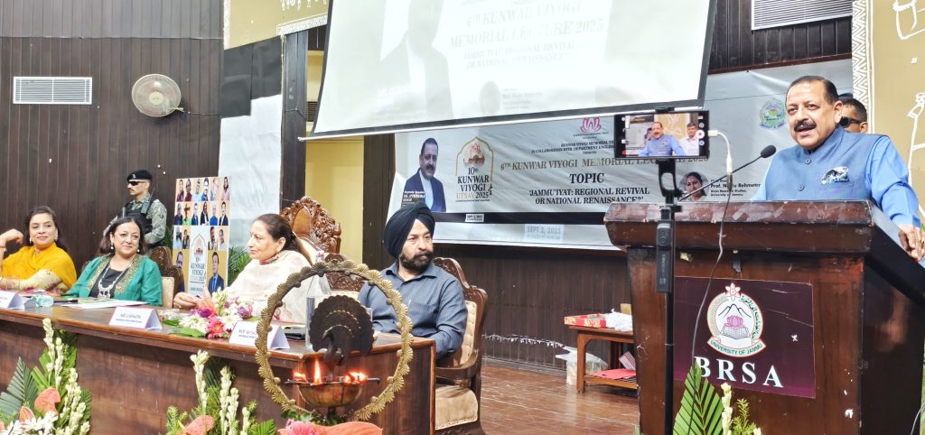 JAMMU, Sept 2 : Delivering the 6th “Kunwar Viyogi Memorial Lecture” at University of Jammu today, Union Minister Dr Jitendra Singh said, it is time to align Dogra legacy with India’s mainstream global journey.