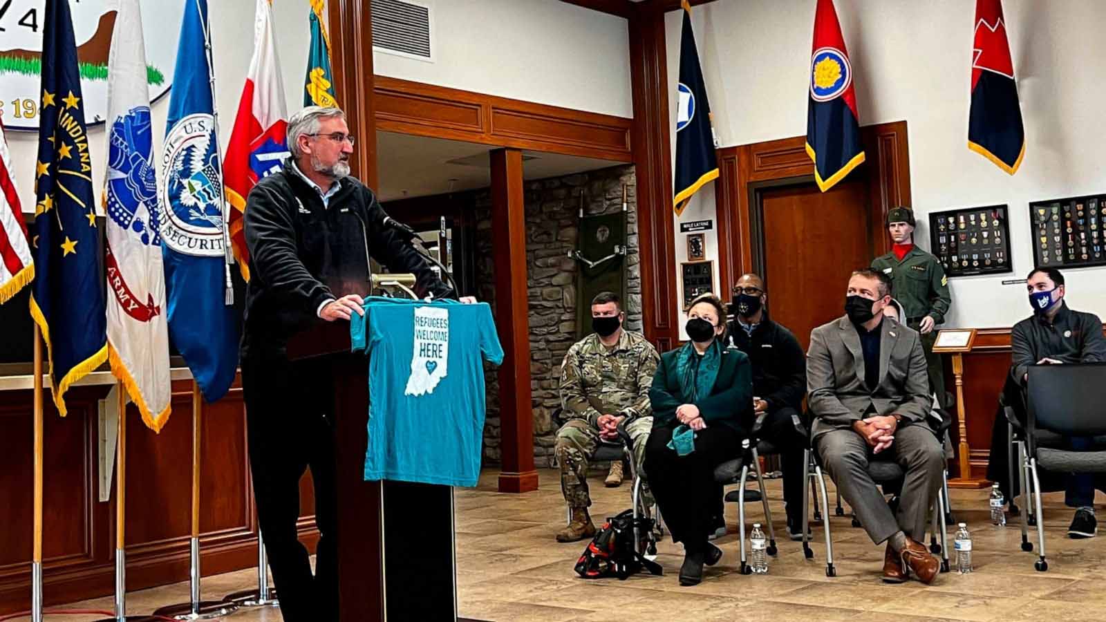 “There’s so much pride and passion … And a reminder that all of our purpose while we’re here is to help them, to help our neighbors. As far away from where they come from, they’re here at home in Indiana and in this country,” Republican Gov. Eric Holcomb said Tuesday.