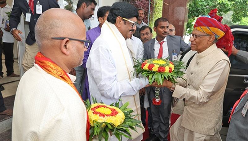 On his arrival at the temple he was accorded a warm welcome by Andhra Pradesh Endowments Minister Anam Ramanarayana Reddy, TTD Chairman B.R. Naidu, and TTD EO Anil Kumar Singhal.