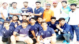 Title winners of Inter-Collegiate Kho-Kho Championship posing for a group photograph along with the dignitaries on Wednesday.