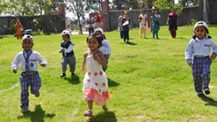 Toddlers taking part in race organised during Annual Sports meet of Lord Mahavira Playway School at Jammu on Thursday.