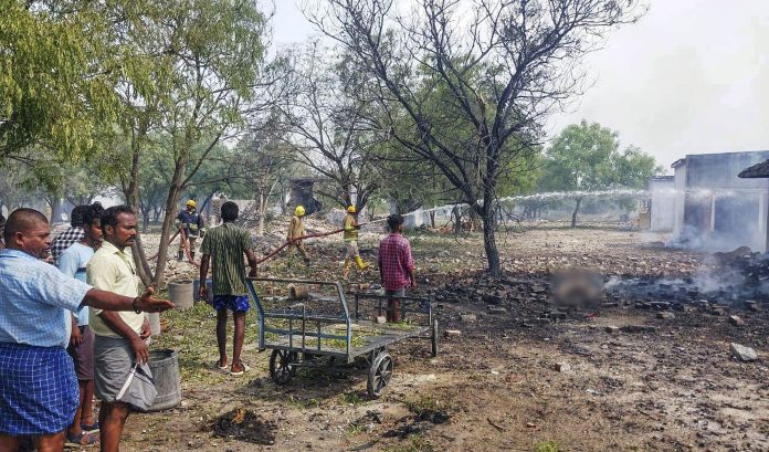 The workers, including five women, were killed in the accident at a fireworks-manufacturing unit near Sengamalapatti in Sivakasi in the district. Seven rooms where the firecrackers were stocked were completely gutted, police said.
