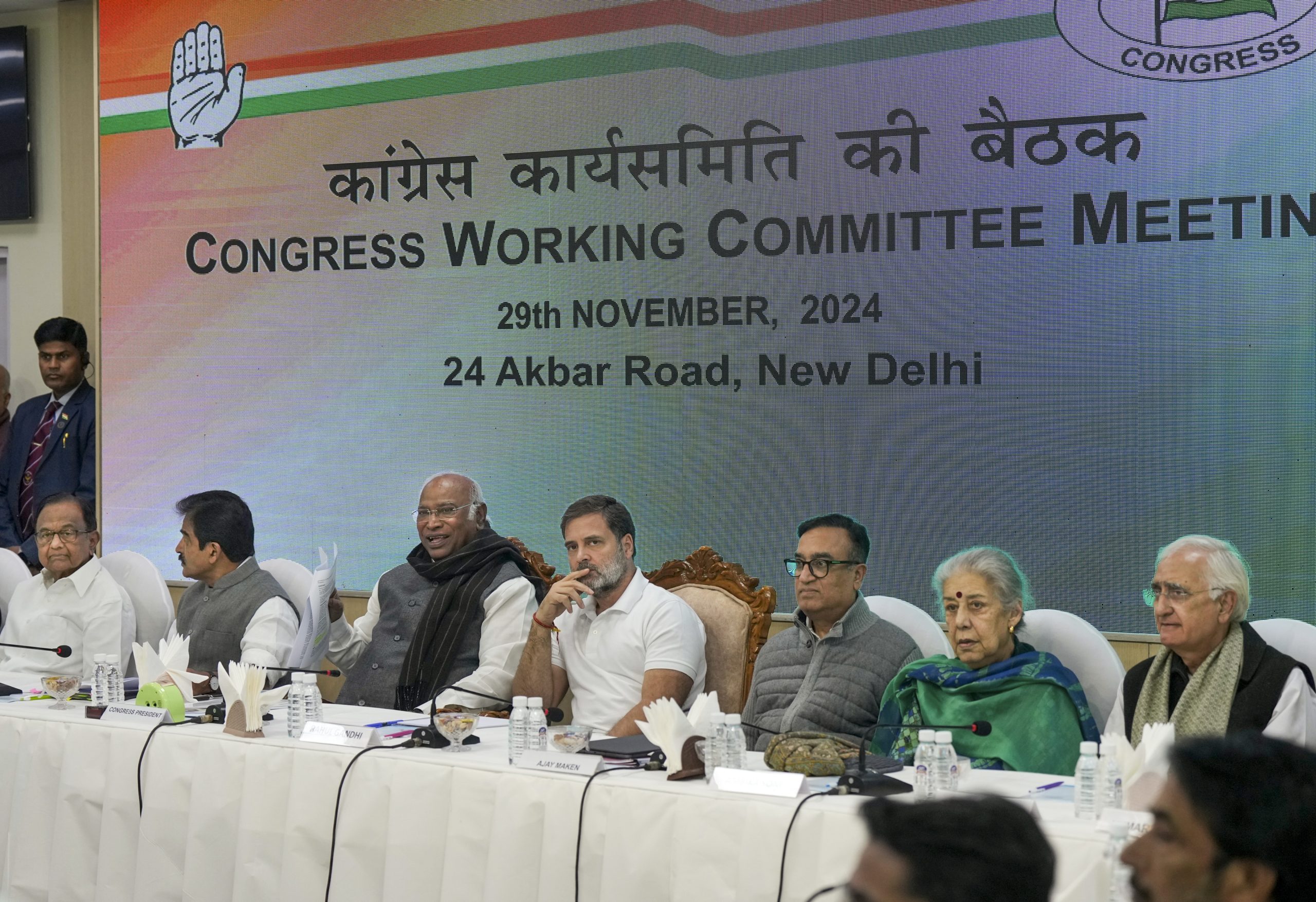 The meeting was chaired by Kharge and attended by former party chief Rahul Gandhi and AICC general secretaries Priyanka Gandhi Vadra, K C Venugopal and Jairam Ramesh, among others.