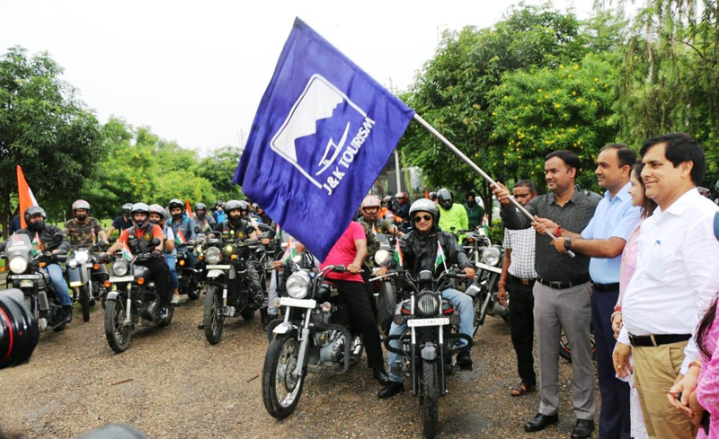 JAMMU, Aug 6: Directorate of Tourism, Jammu, in collaboration with Divisional Administration Jammu and Surinsar Mansar Development Authority, organized a Bike Rally from Kala Kendra, Jammu to Suchetgarh via Surinsar, Mansar, Baba SidhGoria and Baba Chamliyal as a part of ‘Azadi Ka Amrit Mahotsav’ and 75th Independence celebrations.