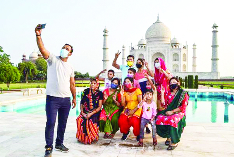 Tourists at the Taj Mahal were asked to follow Covid protocols and were thermal screened and sanitised before entering the premises.