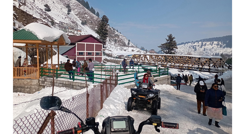 Tourists enjoying the snow at Drang in Gulmarg on Sunday. (UNI) By Daily Excelsior - February 6, 2023 Share FacebookTwitterWhatsAppPinterestLinkedinCopy URLTelegramEmailTumblrReddItPrintKoo Tourists enjoying the snow at Drang in Gulmarg on Sunday. (UNI) Tourists enjoying the snow at Drang in Gulmarg on Sunday. (UNI) Follow our WhatsApp channel