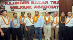 Newly elected office bearers of Rajinder Bazar Traders Welfare Association posing for photograph at Jammu on Sunday.